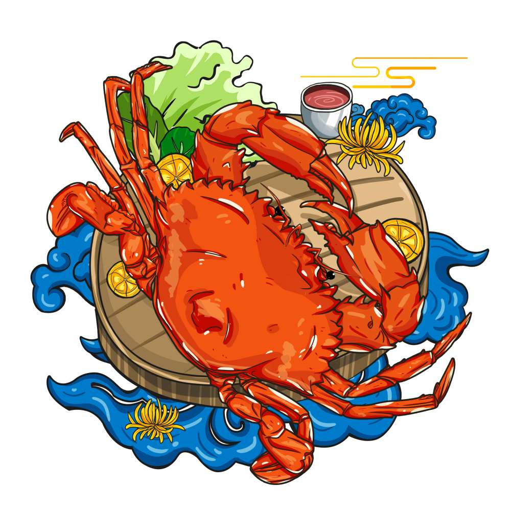 手绘国潮菜肴中国风大闸蟹螃蟹元素