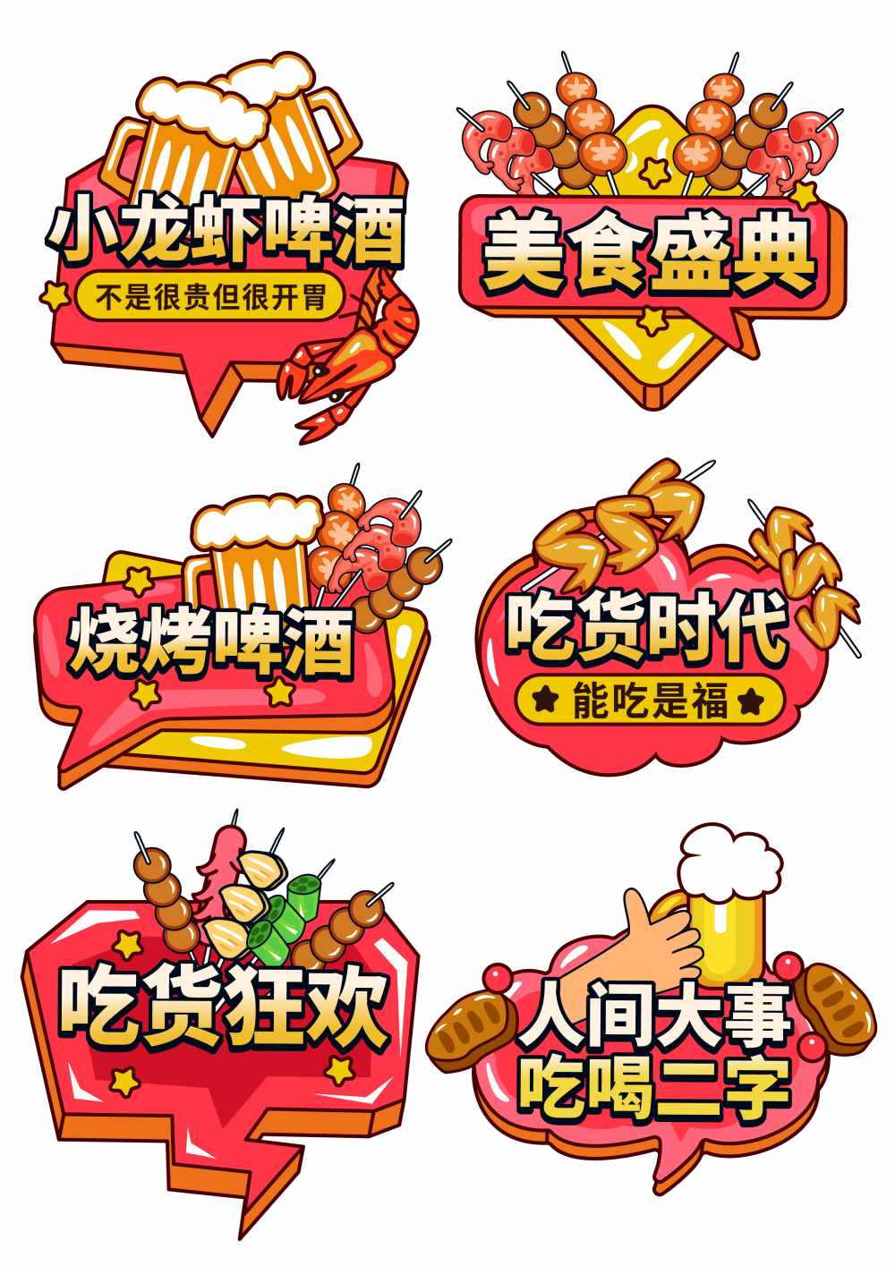 一组矢量吃货美食手举牌套图元素