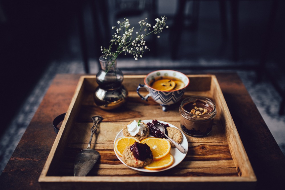 桌子上的面包和咖啡图片