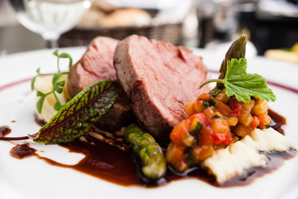 橄榄 西红柿 土豆 蔬菜 牛排 美食摄影图片