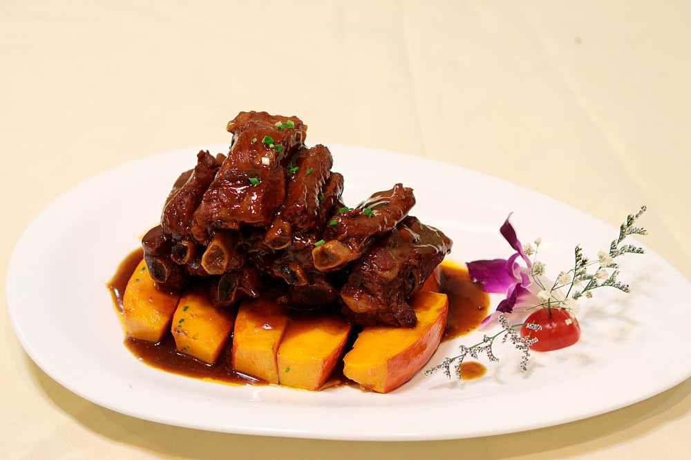 西红柿 土豆 沙拉 牛肉牛排 酱汁 美食摄影图片