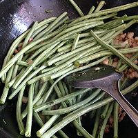 将豇豆段放进去翻炒,炒的过程中如果锅内较干,可放些温水进去,豇豆半熟的时候加盐调味;