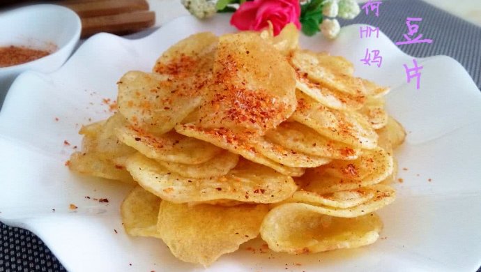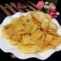 薄片土豆片也以相同方式炸制金黄捞出控油。炸片状的省时些。