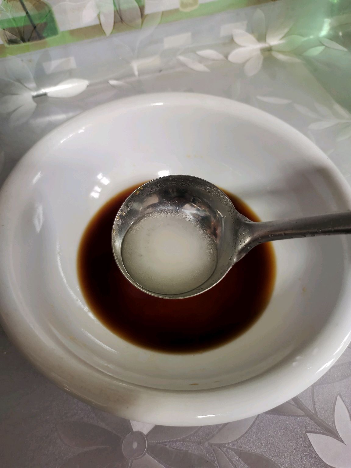 两大勺白糖,两圈生抽,一勺盐,一勺鸡精,两大勺苹果醋,一勺牛肉粉,(一勺小苏打➕一勺9度°米醋,)倒在碗里!(这是冷面爽口的秘诀哦!)