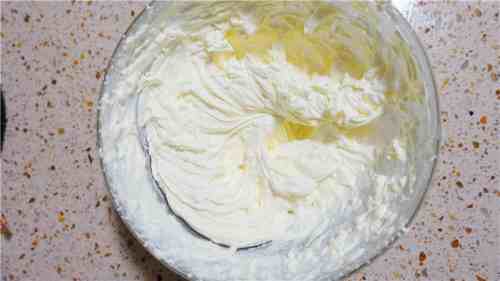 淡奶油加糖粉打发。
