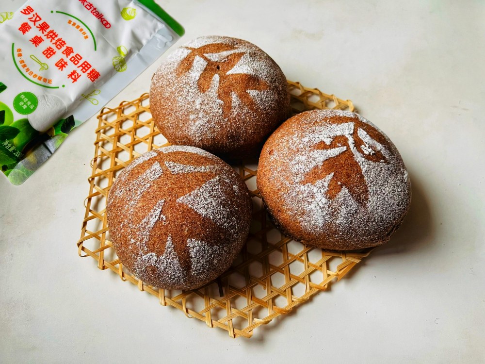 主料:烘焙糖50克 黑麦面粉350克 鸡蛋1 个 牛奶110毫升 酵母粉3 克 盐1 克 黄油20克