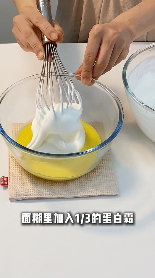 面糊里加入1/3的蛋白霜,大致混合均匀