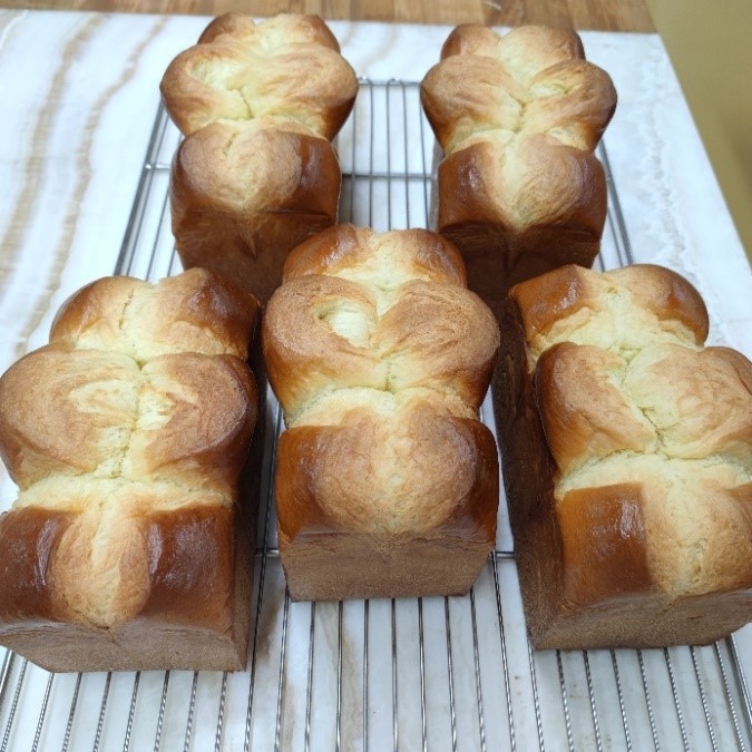 主料:日式吐司粉800 花鼓低筋粉200 白砂糖150 奶粉40 盐18 鲜酵母25 鸡蛋液400 牛奶250 鲁邦种100 黄油400 总量2383