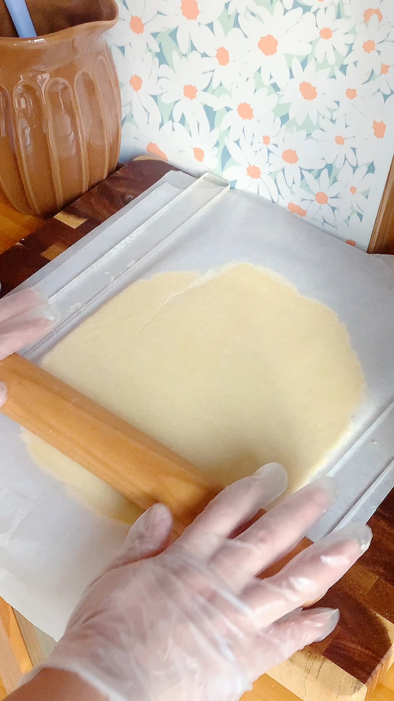 所有材料混合成团,擀成5mm厚薄片,冷藏备用