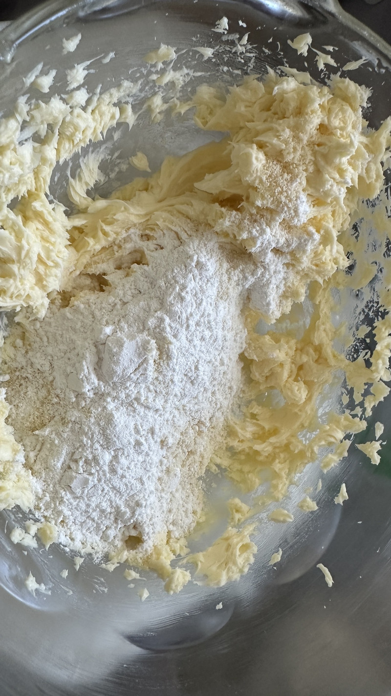 主料:饼干糊: 无盐黄油120克 糖粉45克 马斯卡彭奶酪50克 淡奶油40克 低筋面粉120克 杏仁粉30克
