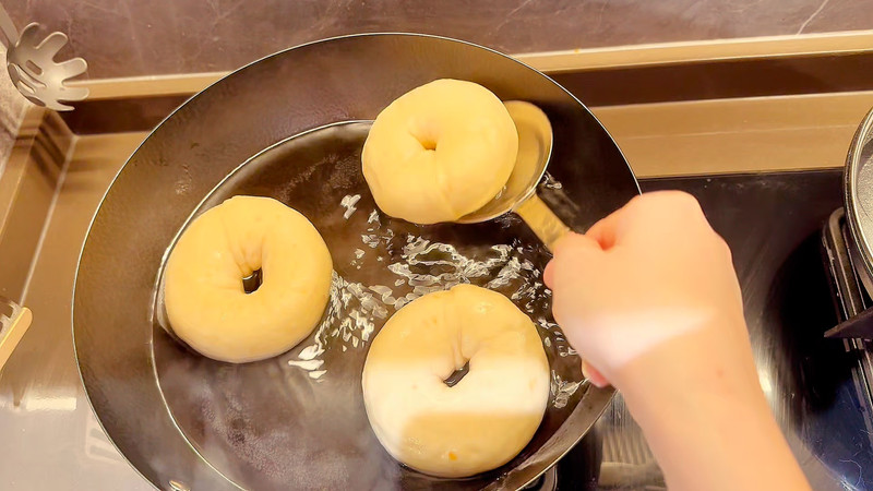 发酵好的贝果体积膨胀约1.5倍大