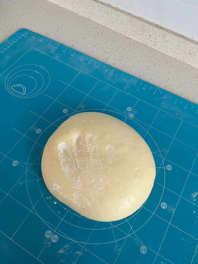 发酵好的面团取出轻压排气,均分为8份,滚圆后松弛约15分钟。