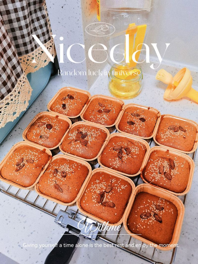 主料:红枣肉150克 红糖120克 牛奶100毫升 鸡蛋8个 低粉130克 黑全麦粉70克 泡打粉8克 油80克 葡萄干适量 白芝麻适量