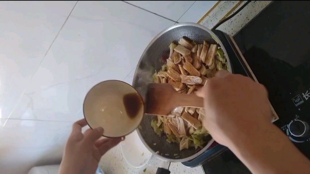 放入白菜包菜翻炒一会放入盐(盐在这一步放够,后面不用放盐了)炒至断生
