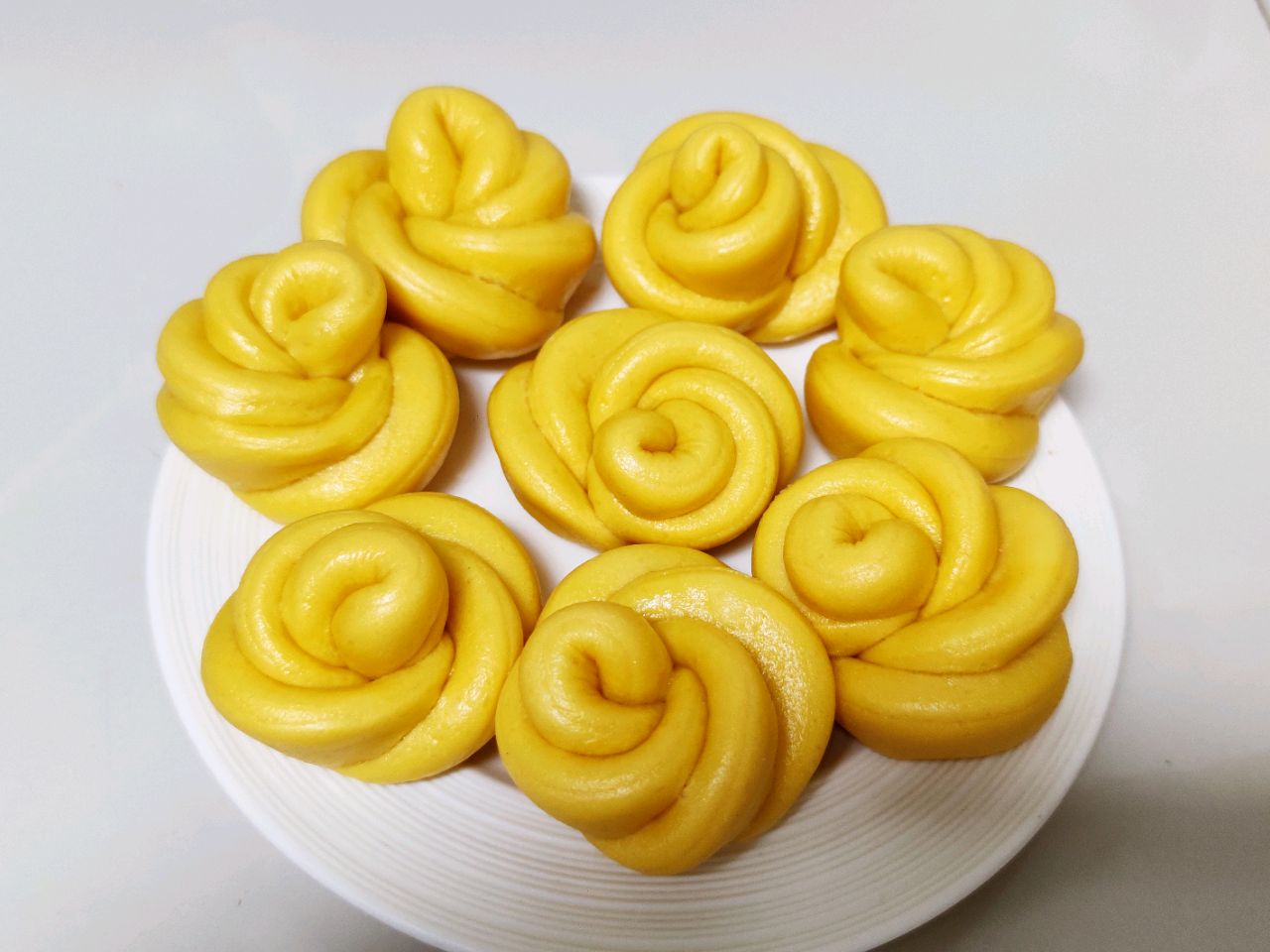 工作之余也不要忘了给家人以关爱,用南瓜泥➕新良家宴馒头自发粉和面发酵蒸一份玫瑰花馒头吧,一次发酵很简单,喧软蓬松香甜,玫瑰花送给心爱的人,既好看又饱腹。