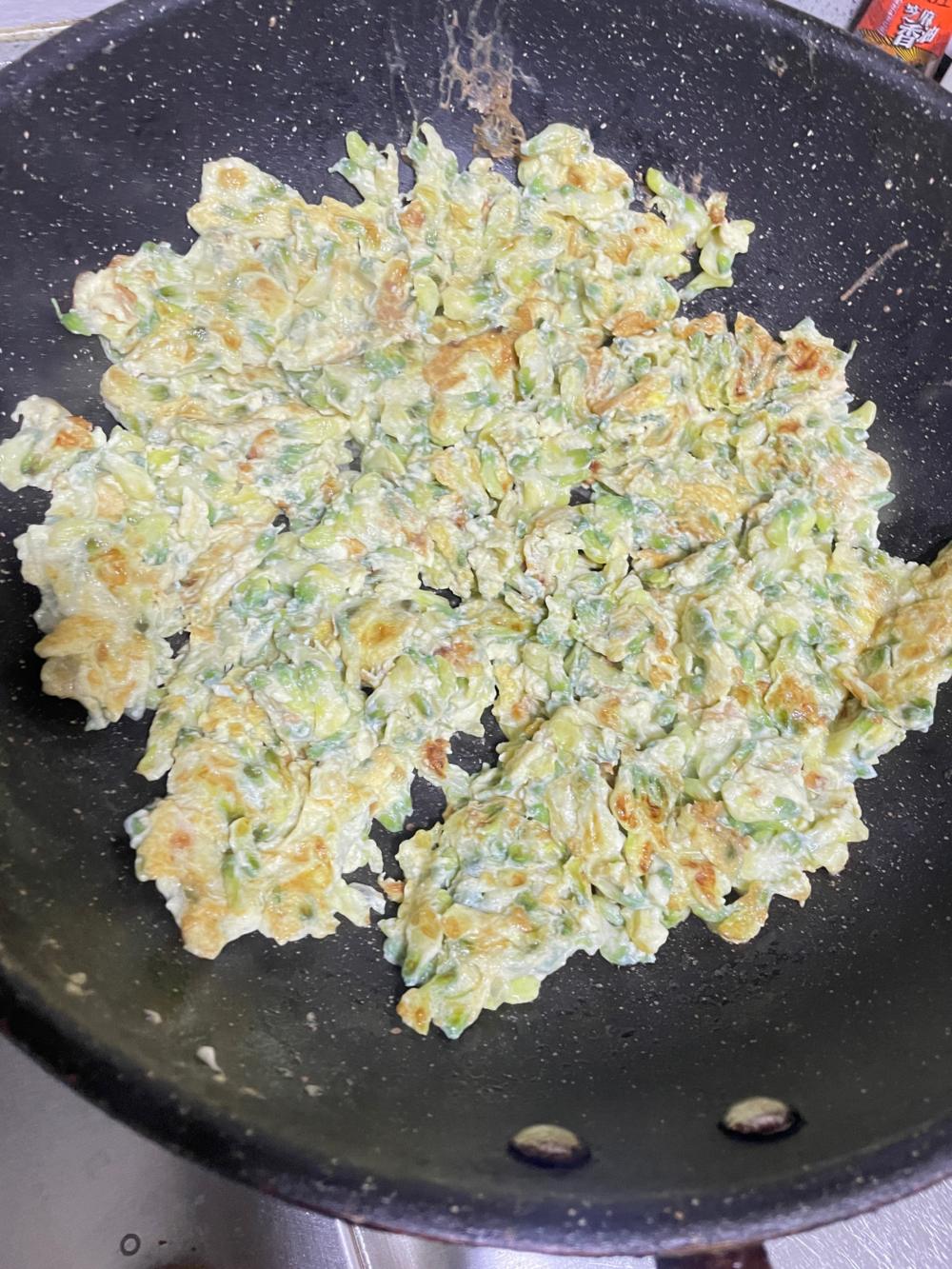 锅烧热,放油,倒入槐树花鸡蛋液,翻炒至熟即可