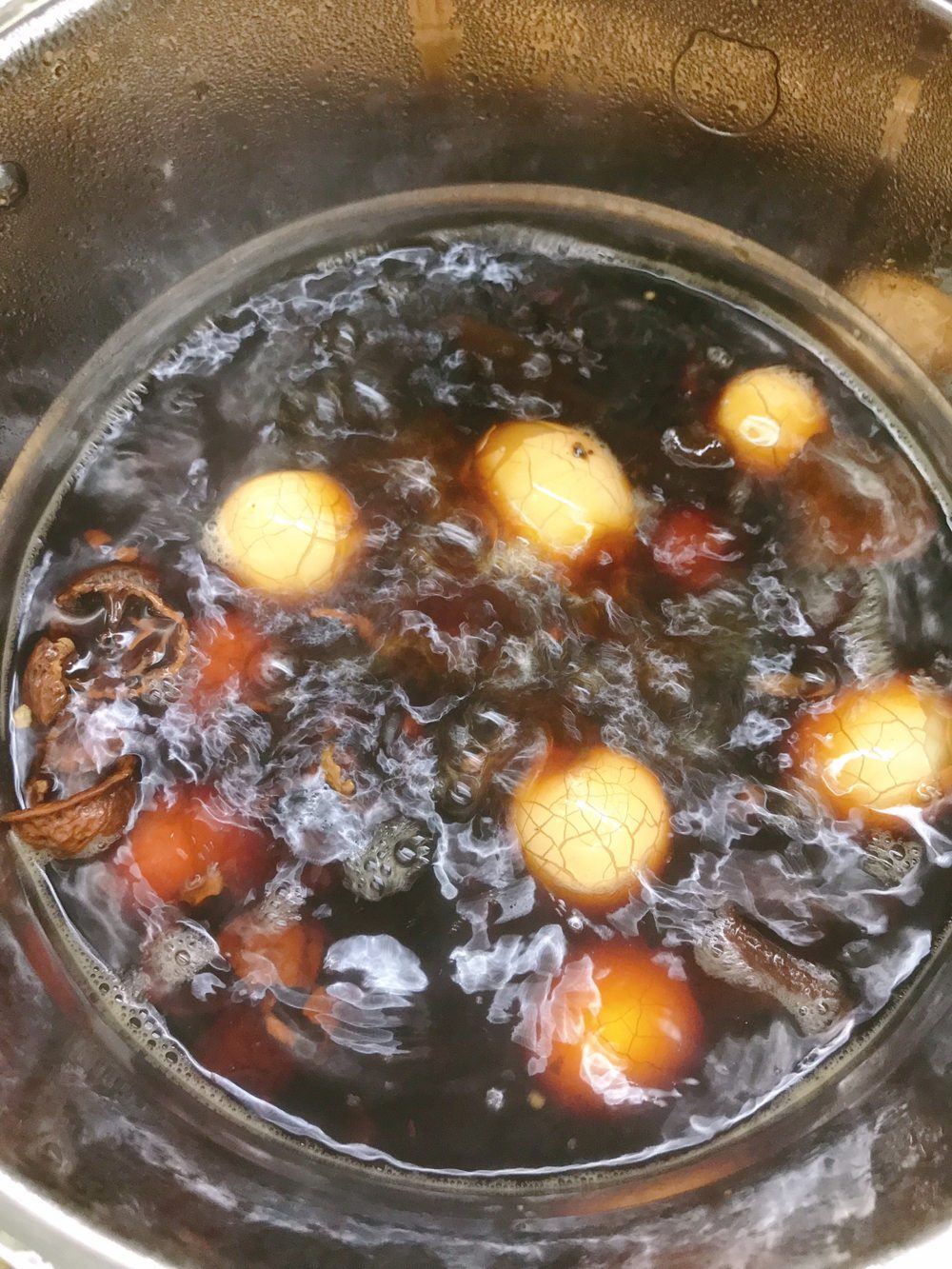 主料:核桃壳(带分心木)20个 陈皮2块 鸡蛋12个 老抽20克 酱油20克 盐2勺