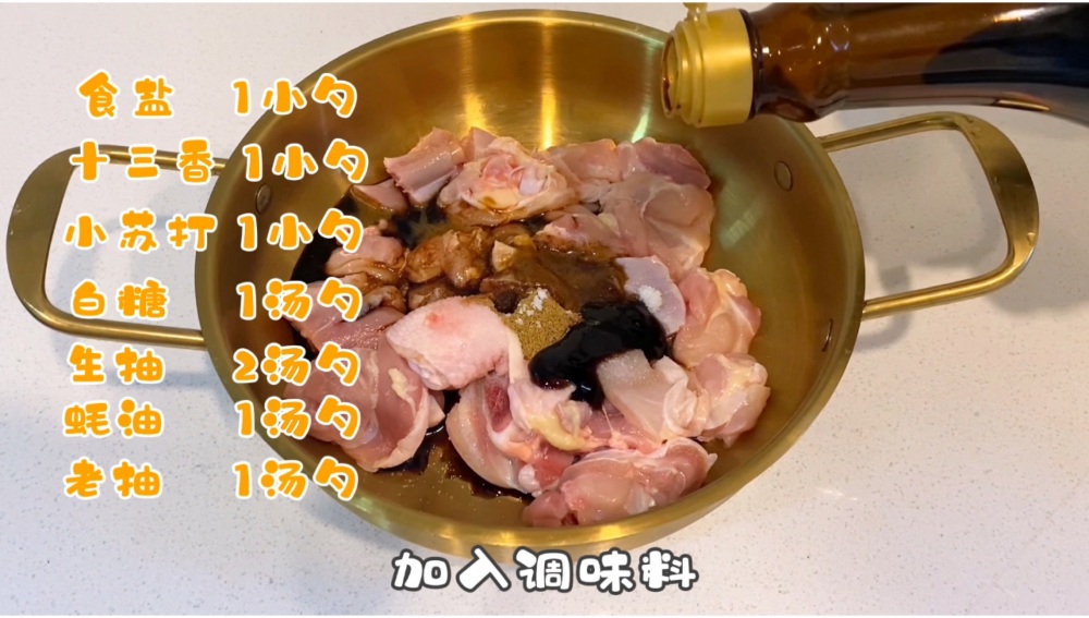 鸡块和酱汁炒匀 加入1罐啤酒 继续加入1小碗开水 大火煮沸 鸡块大火煮5分钟后 转中火 盖上盖子 炖10分钟左右