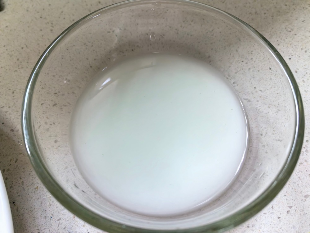 调一个料汁:适量清水,加盐和鸡精,半勺淀粉拌匀备用。