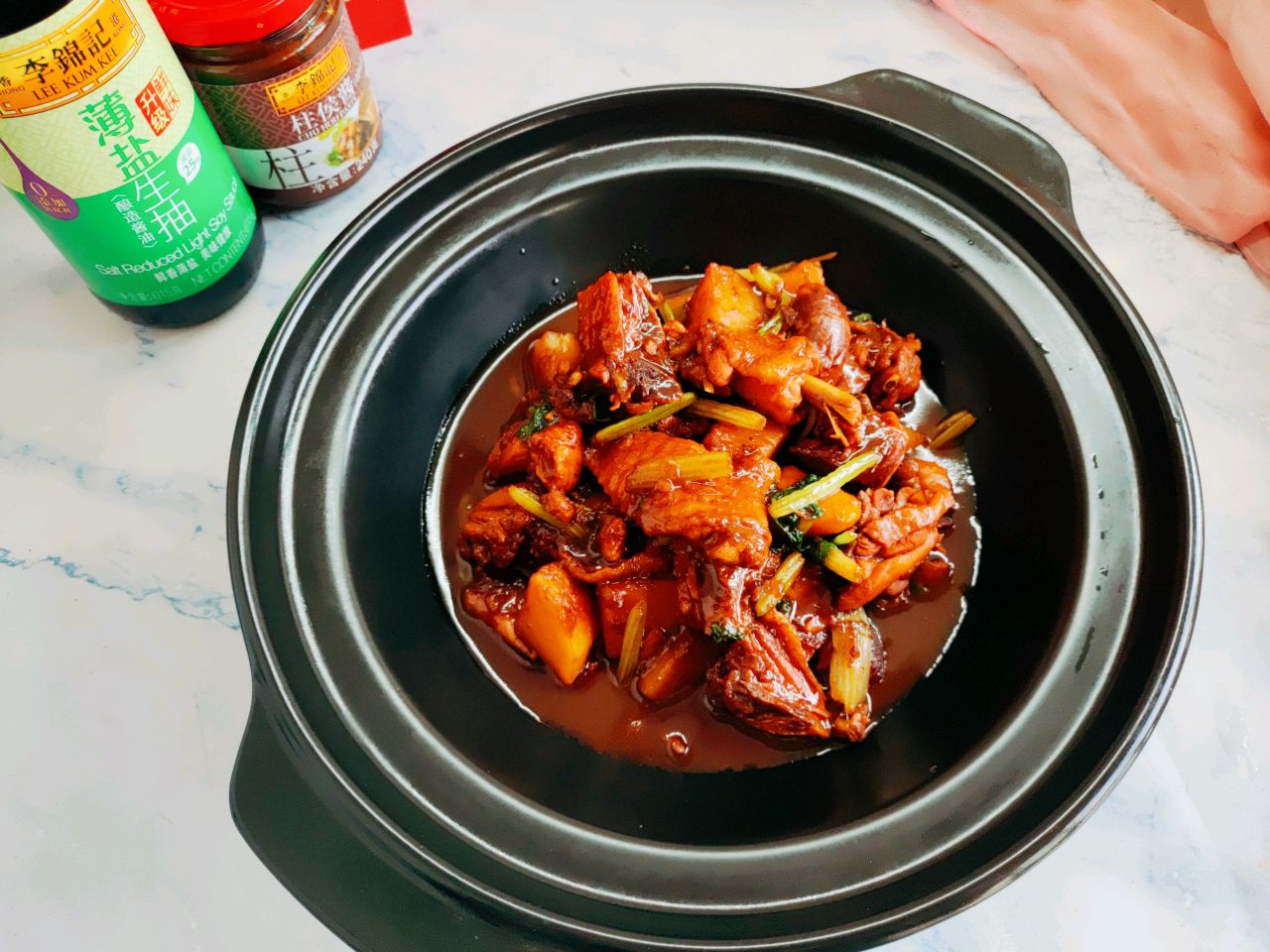 调料:李锦记薄盐生抽30克 李锦记柱候酱15克 白糖1勺 老抽少许 菜籽油一勺 鸡油一勺 料酒一勺