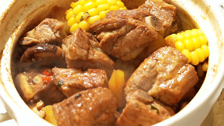 主料:排骨600克 干香菇50克 玉米50克 土豆50克 “太太乐原味鲜”头道生抽酱油15克 葱、蒜、小米辣各5克
