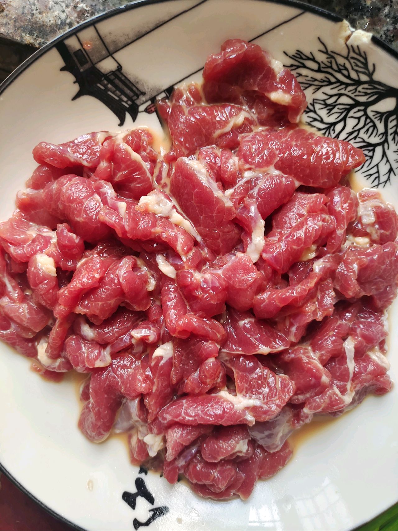 全部食材洗净,切好,如图所示 掌握不好火候的可以选择买牛里脊,牛里脊要嫩些,炒出来不容易翻车