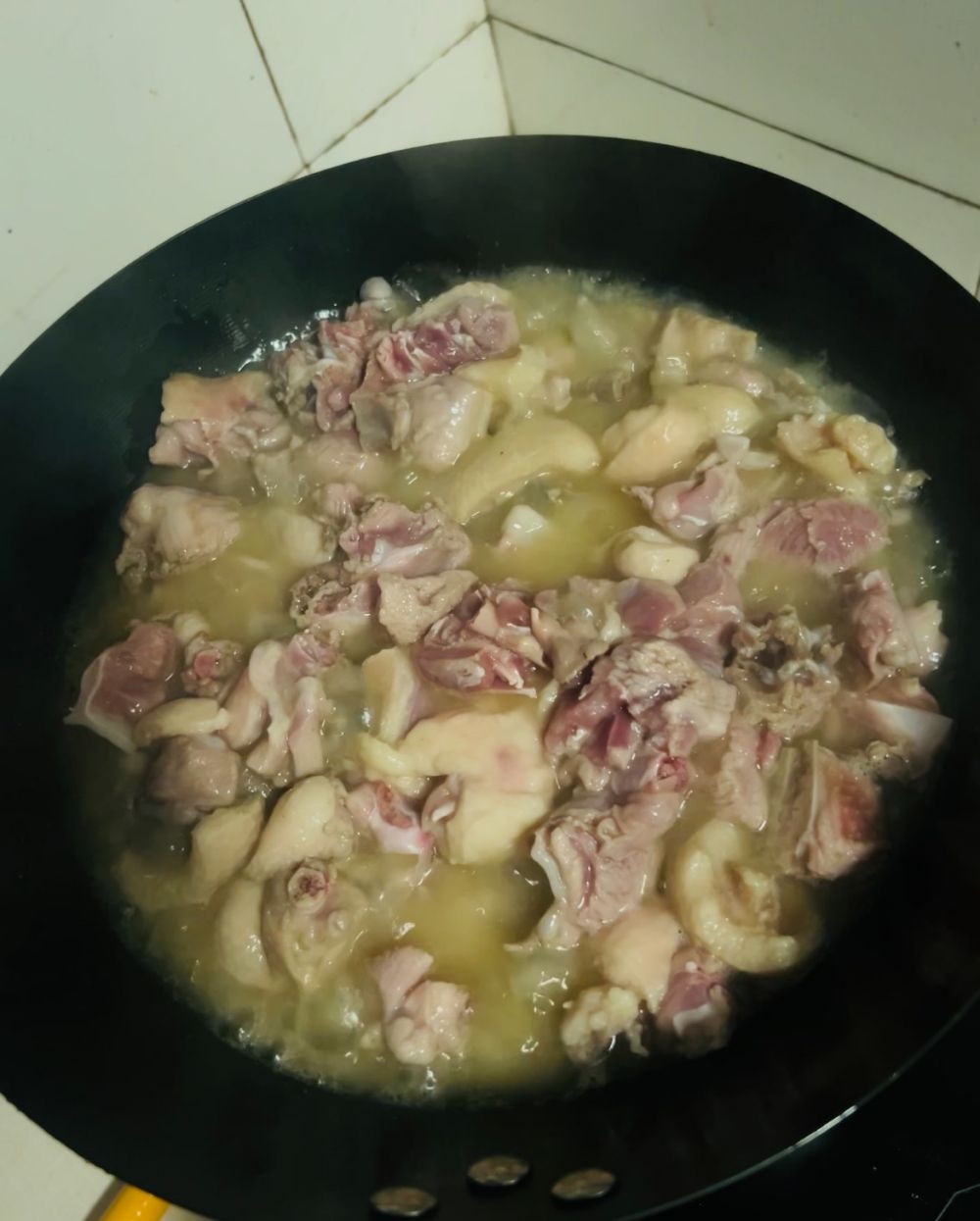 鸭剁块用面粉加适量水揉洗几分钟后,用清水洗净