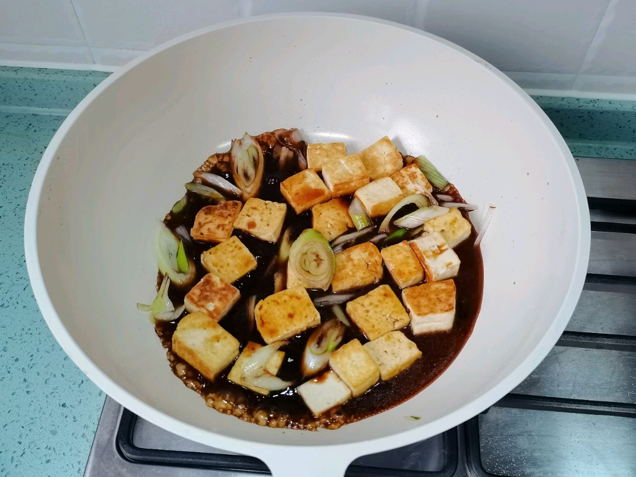 收汁到刚刚好挂住豆腐即可,不宜过多也不宜太干。