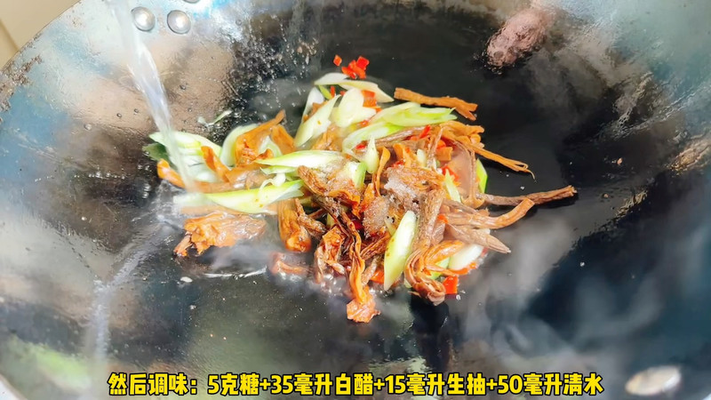 主料:猪肝350克 鹿茸菇100克 大葱35克 红辣椒15克 葱花10克