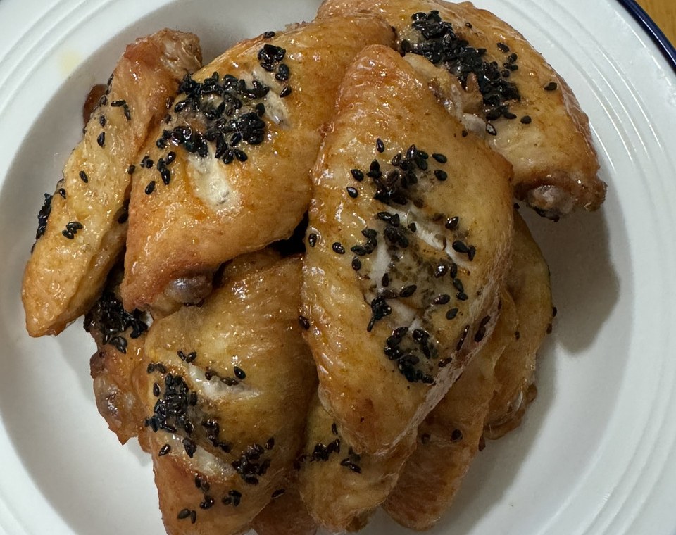 主料:鸡翅中600g 奥尔良烤鸡翅粉45g 蜂蜜2勺 黑芝麻适量