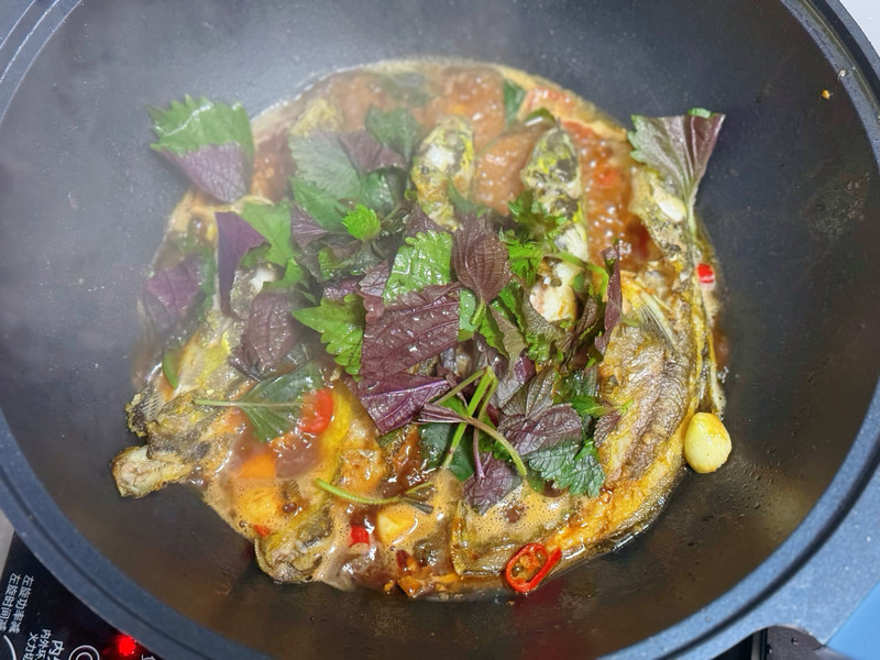 主料:黄骨鱼4条 线椒1个 红辣椒1个 紫苏5根