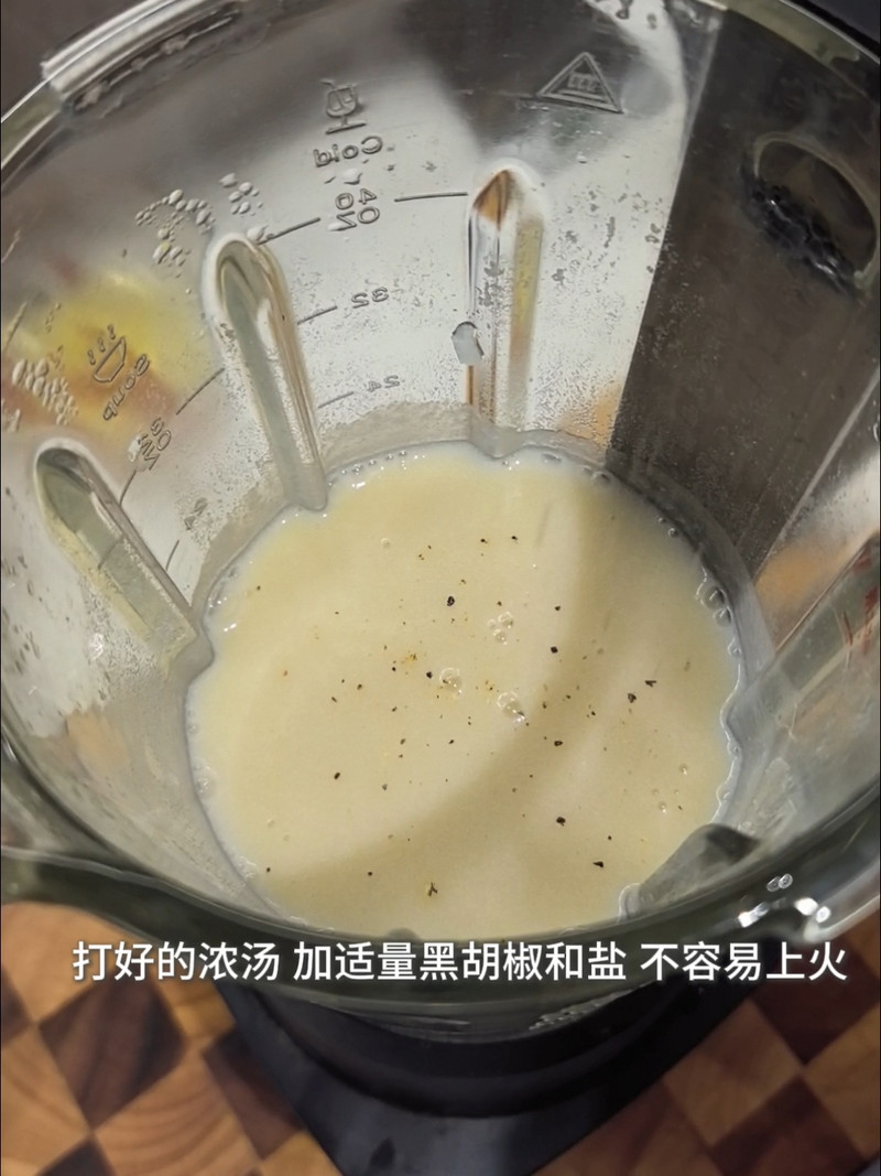 浓汤模式打好后,加入适量的黑胡椒和盐,胡椒有较好的引火归元的效果,这样的羊肉汤不容易上火