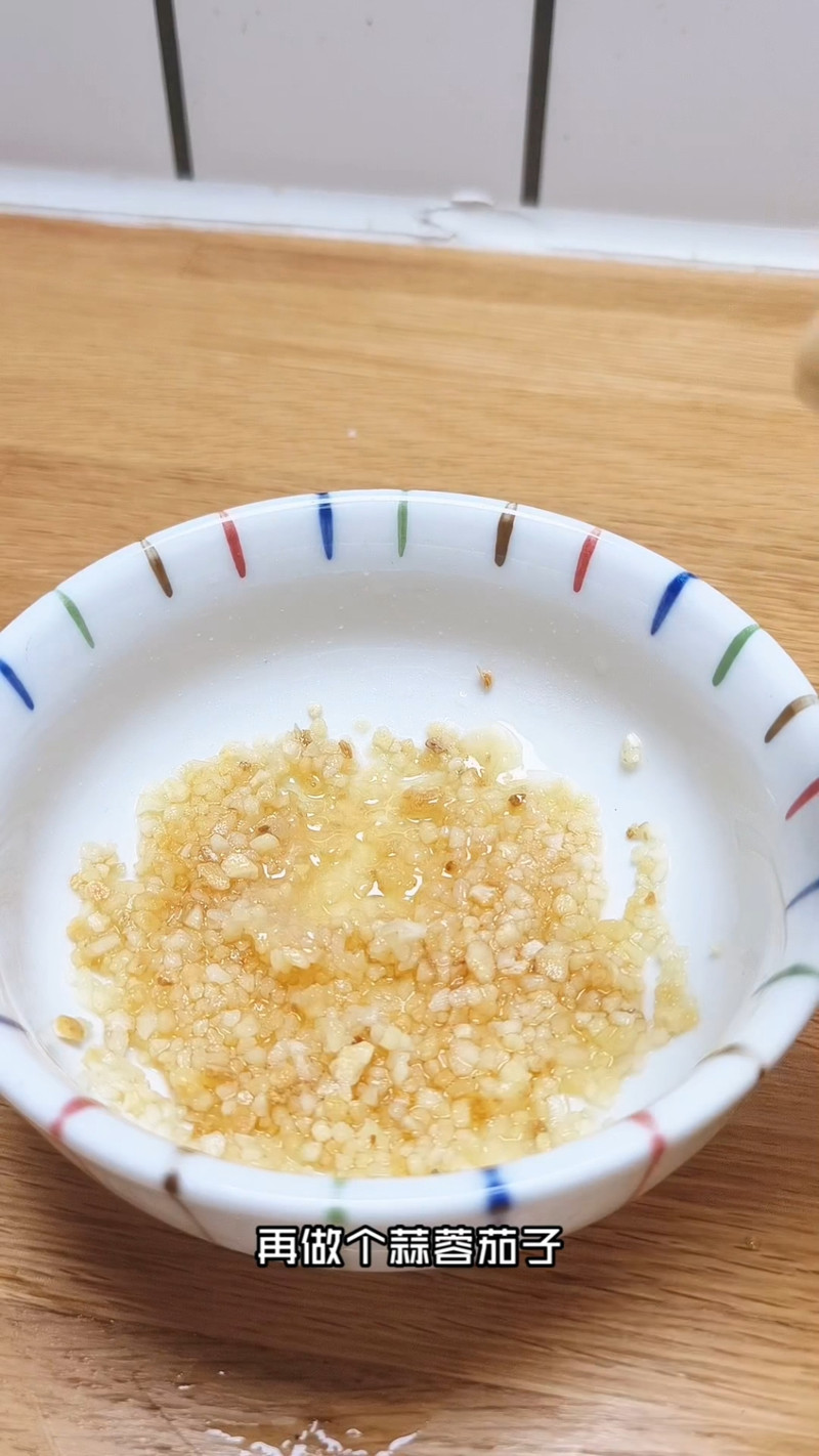 蒜蓉茄子1.大蒜末+油加热1分钟