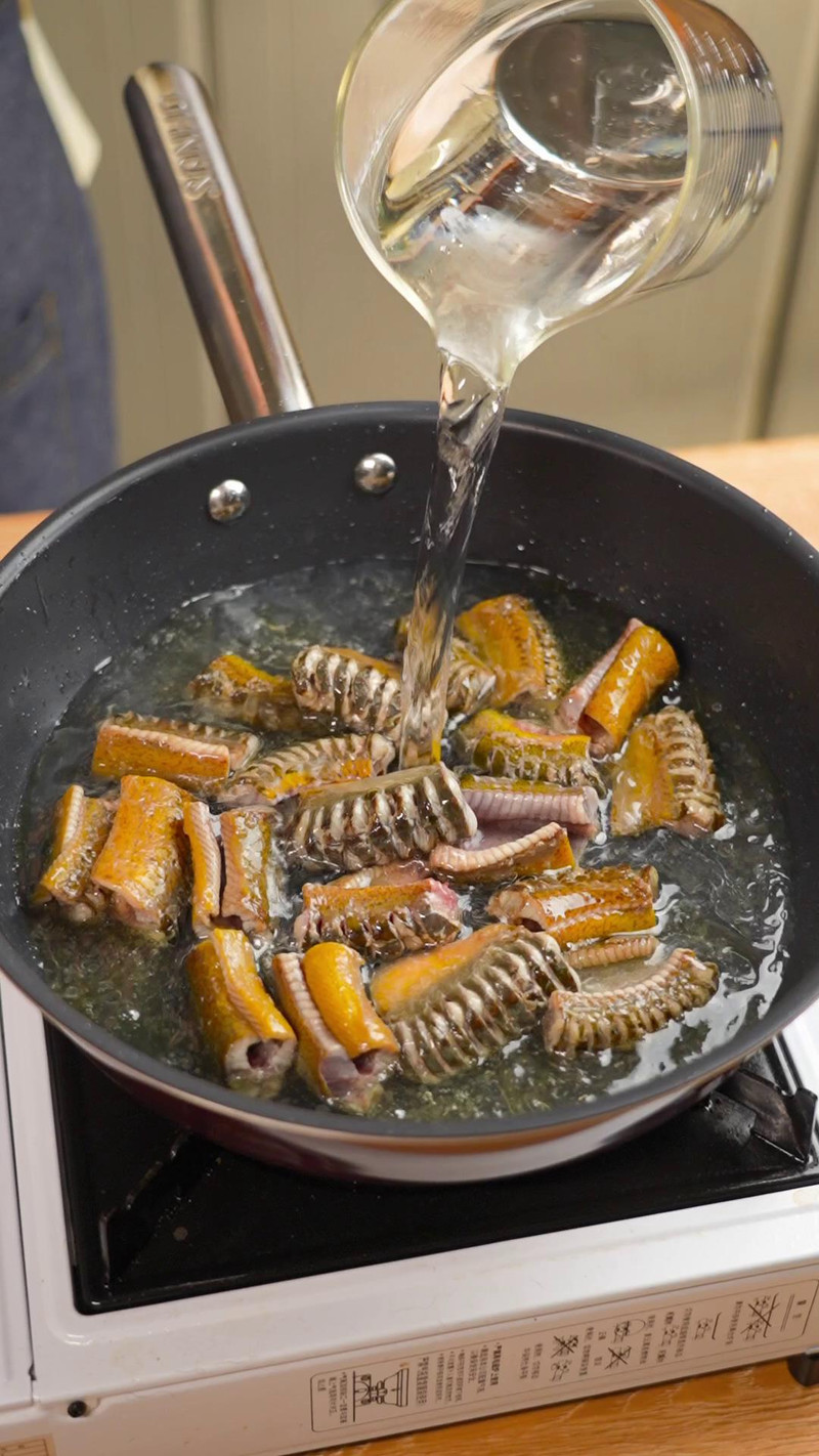 茄香鳝鱼汤 主料:鳝鱼300g 茄子200g 五香粉少许 白砂糖少许 盐适量 老抽适量 步骤1鳝鱼处理干净后洗净,切段;茄子洗净去皮,切段;步骤2茄子入盐水浸泡,备用;步骤3油锅烧热,放入鳝鱼段,煎至表面变黄;步骤4然后加入适量清水,大火炖煮;步骤5调入五香粉、白砂糖、盐、老抽,大火煮沸后转小火,煮至鱼肉熟烂;步骤6再放入茄子段,炖煮 20 分钟即可。步骤7炖煮后搅拌即可出锅。 喜欢 收藏 鳝鱼 茄子 ©本菜谱的做法由 孔老师教做菜 2024-11-20 编写,未经授权不得转载! 本站所有资源来源于用户上传和网络,若有图片和内容侵权,请邮件联系站长! 感谢大家与美食U一起努力,营造一个优秀和谐的网络环境!! 上一篇 椒盐大虾 下一篇 蒜香黄油杏鲍菇 您需要登录后才可以参与评论 登录 | 立即注册 相关美食 风味茄子 少油版红烧茄子 家庭版肉末茄子 擂辣椒茄子皮蛋,... 想告诉全世界这个... 蒜辣豆豉烧茄子 家庭版少油~红烧茄子 凉拌茄子 拌上大米饭香迷糊... 相关文章 减肥也分体质,你... 小孩子提高免疫力... 黄鳝5种吃法,增强... 色斑影响形象,吃... 能降低胆固醇的鱼... 茄子为什么是孕妇... 食材挑选有秘诀 ...