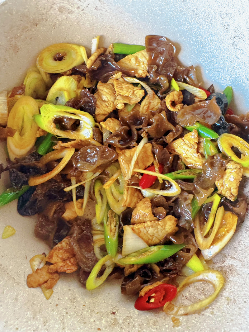 木耳鸡蛋炒肉 主料:大葱半根 鸡蛋3个 木耳适量 瘦肉150克 步骤1鸡蛋打散提前炒熟备用; 木耳提前泡发,焯水3分钟;步骤2热锅里有,爆香花椒粉,放入肉片炒至变色,放入老抽、蒜末炒出香味; 放入大葱、青红辣椒、木耳翻炒,调入生抽、蚝油、胡椒粉、盐翻炒;步骤3放入鸡蛋翻炒均匀;步骤4出锅装盆即可~ 喜欢 收藏 瘦肉 鸡蛋 木耳 ©本菜谱的做法由 里屿 2024-12-27 编写,未经授权不得转载! 本站所有资源来源于用户上传和网络,若有图片和内容侵权,请邮件联系站长! 感谢大家与美食U一起努力,营造一个优秀和谐的网络环境!! 上一篇 辣椒炒牛肉 下一篇 荷兰豆炒大虾 您需要登录后才可以参与评论 登录 | 立即注册 相关美食 新手就能成功的【... 花生酥饼,拜托都... 豆腐鲜虾菇菌汤 香葱肉松奶油吐司 蔬菜鲜虾饼,一口... 多次调试后得到的... 无敌好吃的香煎豆腐 最简单的红烧排骨 提拉米苏布朗尼锁... 相关文章 维生素D有什么作用... 准妈妈的六吃与六... 老人吃什么食物有... 孕期饮食 15种食... 冬季减肥,这些方... 中老年人补钙吃什... 天天吃8种食物,皮... 4种早餐,补充能量...