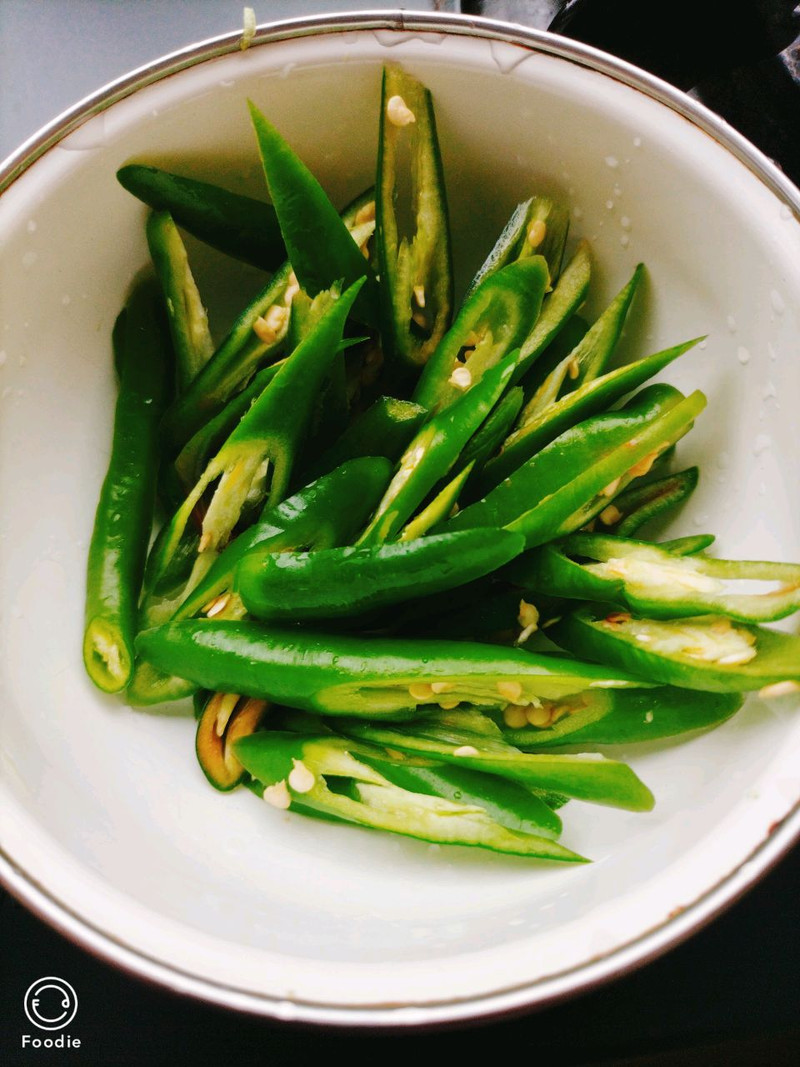 青椒切好备用。