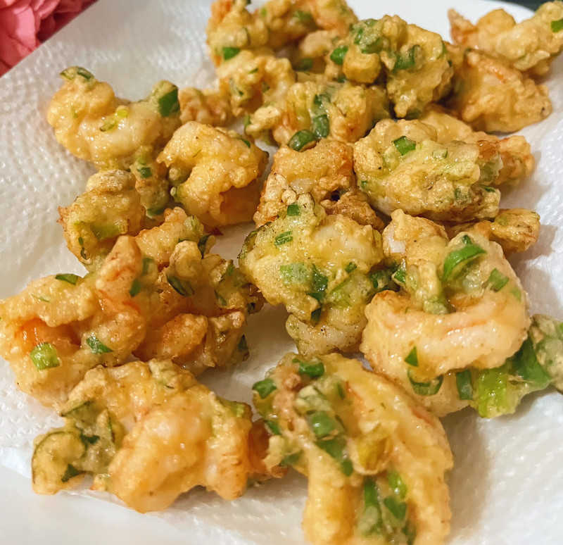 葱香虾球 主料:虾22只 葱花适量 盐4克 胡椒粉1克 鸡蛋1个 玉米淀粉3勺 面粉1勺 食用油适量 步骤1虾去虾线,去壳,在背上深切一刀,但不要切断。放入葱花、盐、胡椒粉、鸡蛋、淀粉、面粉。步骤2拌匀备用步骤3锅中倒入油,加热到170度左右,放入虾炸制,定型后搅拌一下,炸制金黄色捞出即可。步骤4成品 喜欢 收藏 鸡蛋 海虾 玉米淀粉 ©本菜谱的做法由 逗娘的烘焙厨房 2025-01-08 编写,未经授权不得转载! 本站所有资源来源于用户上传和网络,若有图片和内容侵权,请邮件联系站长! 感谢大家与美食U一起努力,营造一个优秀和谐的网络环境!! 上一篇 藤椒麻辣火爆鸭胗 下一篇 简单健康的胡椒葱油鸡 您需要登录后才可以参与评论 登录 | 立即注册 相关美食 新手就能成功的【... 花生酥饼,拜托都... 豆腐鲜虾菇菌汤 香葱肉松奶油吐司 蔬菜鲜虾饼,一口... 多次调试后得到的... 无敌好吃的香煎豆腐 最简单的红烧排骨 提拉米苏布朗尼锁... 相关文章 维生素D有什么作用... 老人吃什么食物有... 宝宝这样吃虾才补钙 孕期饮食 15种食... 4种早餐,补充能量... 日常过于用脑,吃... 冬季晚餐这样吃,... 食物去黑眼圈,缓...