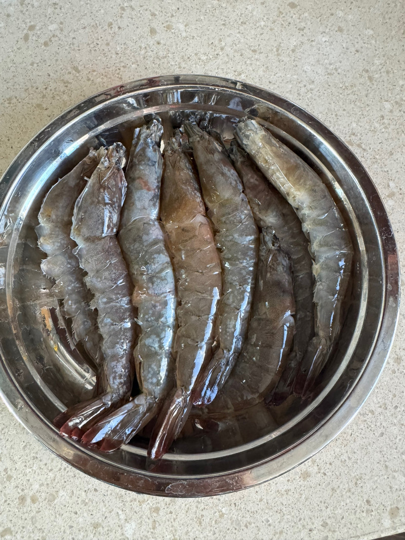 主料:大虾8只 油1勺 生抽3勺 白糖1勺 姜丝适量 葱丝适量 白胡椒粉少半勺 黄酒(或料酒)适量 白醋适量