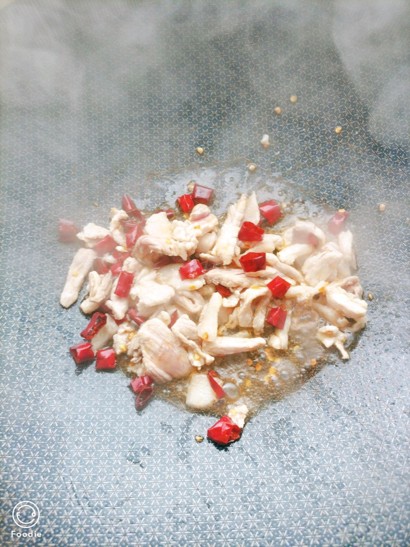 主料:豌豆片250g 前腿肉50g 干辣椒4个 盐适量