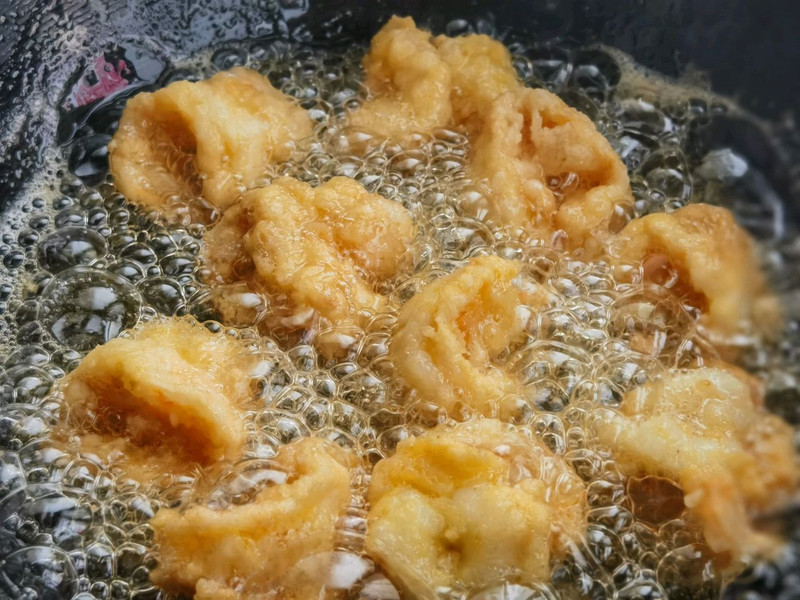 虾仁不用炸太久,一分钟左右即可,炸久了口感不好。
