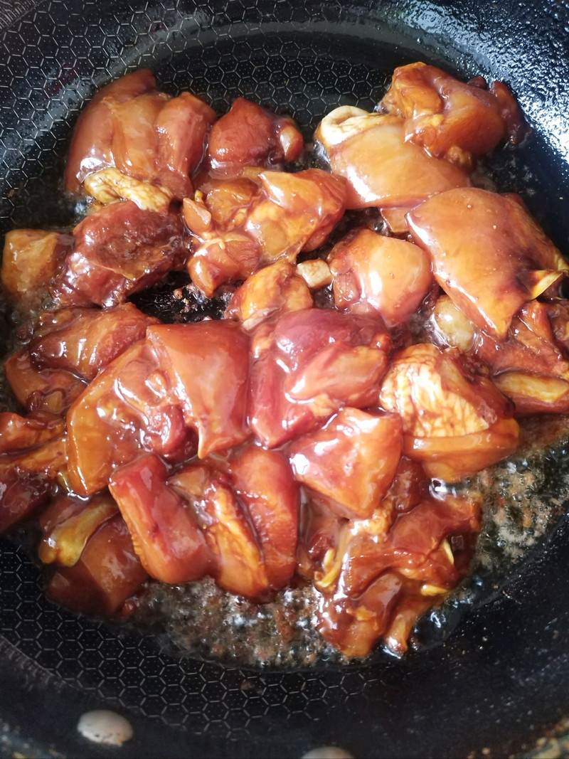加入料酒2勺、生抽2勺、老抽1勺、冰糖适量,翻炒均匀;