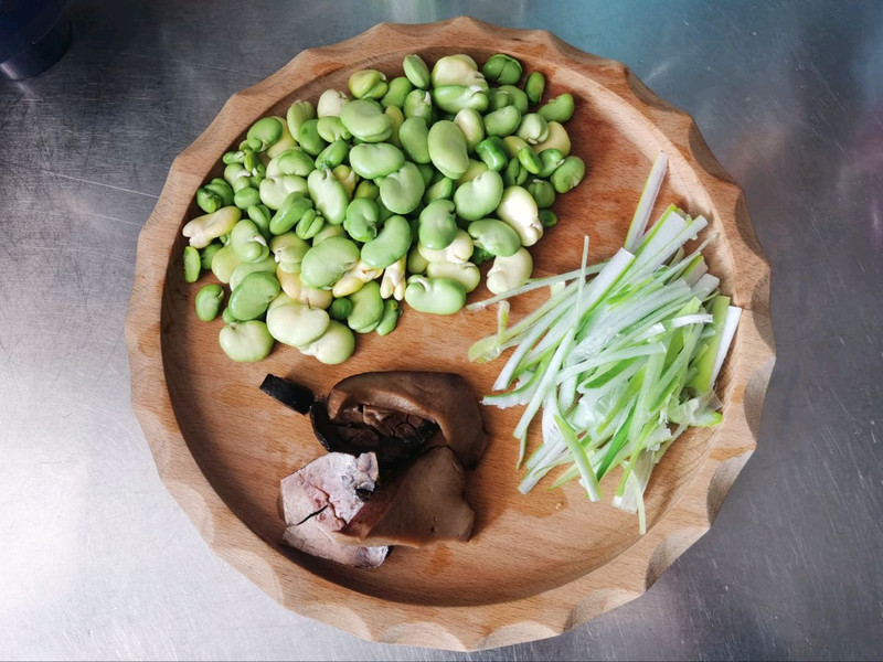 主料:蚕豆仁300克 干牛肝菌8片 葱1大段 油2勺 盐3克