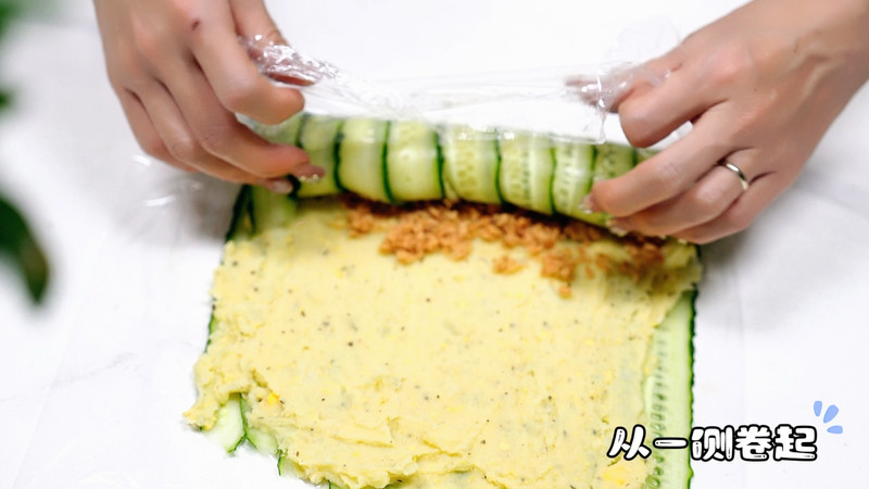 土豆泥绵软细腻,黄瓜清香脆口,三文鱼肥美香滑