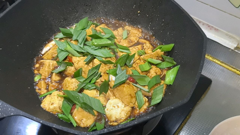 主料:卤水豆腐一块 黄豆酱2勺 青蒜1根 大葱1/3根 淀粉1勺 老抽1勺 生抽2勺 小米辣1个