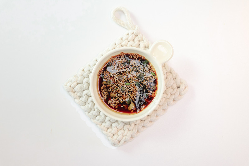➎ 蘸酱:少许葱花蒜末✚一勺生抽✚一勺陈醋✚少许芝麻油✚少许芝麻搅匀,喜欢吃辣的宝宝加点儿小米辣或油泼辣子