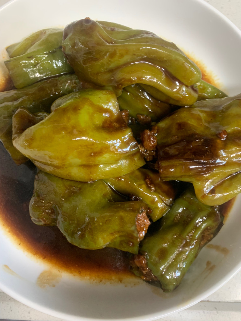 虎皮青椒的外壳加上鲜嫩可口的肉馅儿,一口咬下去……可以多吃两碗米饭哦