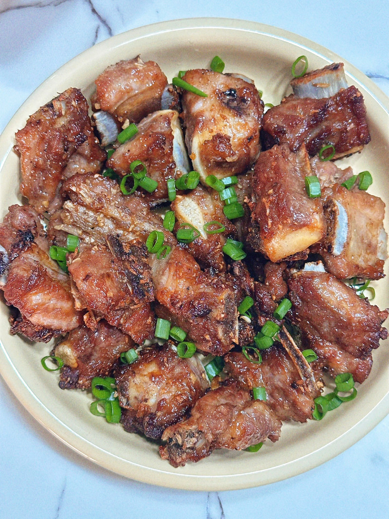 主料:排骨 生抽3勺 料酒2勺 蒜泥 蚝油2勺 淀粉2勺 黑胡椒