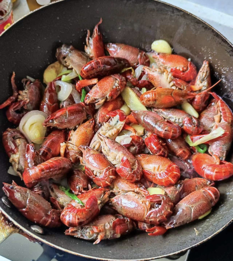 小龙虾洗净备用,葱姜蒜和洋葱放油里煸炒。