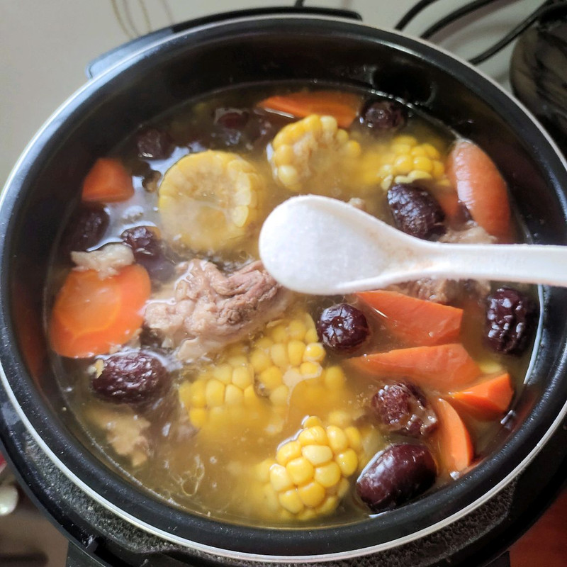 装入玉米排骨汤就可以食用啦!鲜甜可口,太好喝啦!