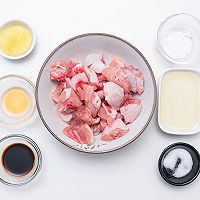 鸡腿块入油、盐、料酒、淀粉、生抽码底味半小时。